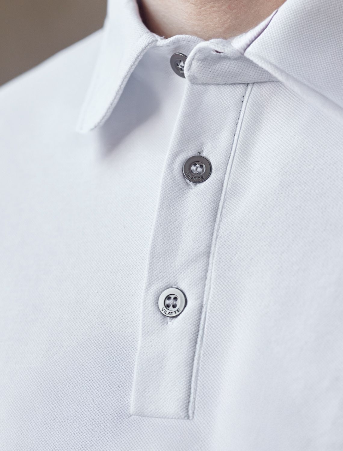 Поло выполнено из фактурного хлопка, которое обеспечивает комфорт даже в жаркое время года и почти не мнется. Застежка на матовые серебряные пуговицы с логотипом бренда. Преимущество изделия — это добавление эластана в классический для поло материал «пике», что гарантирует безупречный комфорт и долговечность. Поло сочетается в паре со светлым денимом и чиносами, в офис с черными брюками.