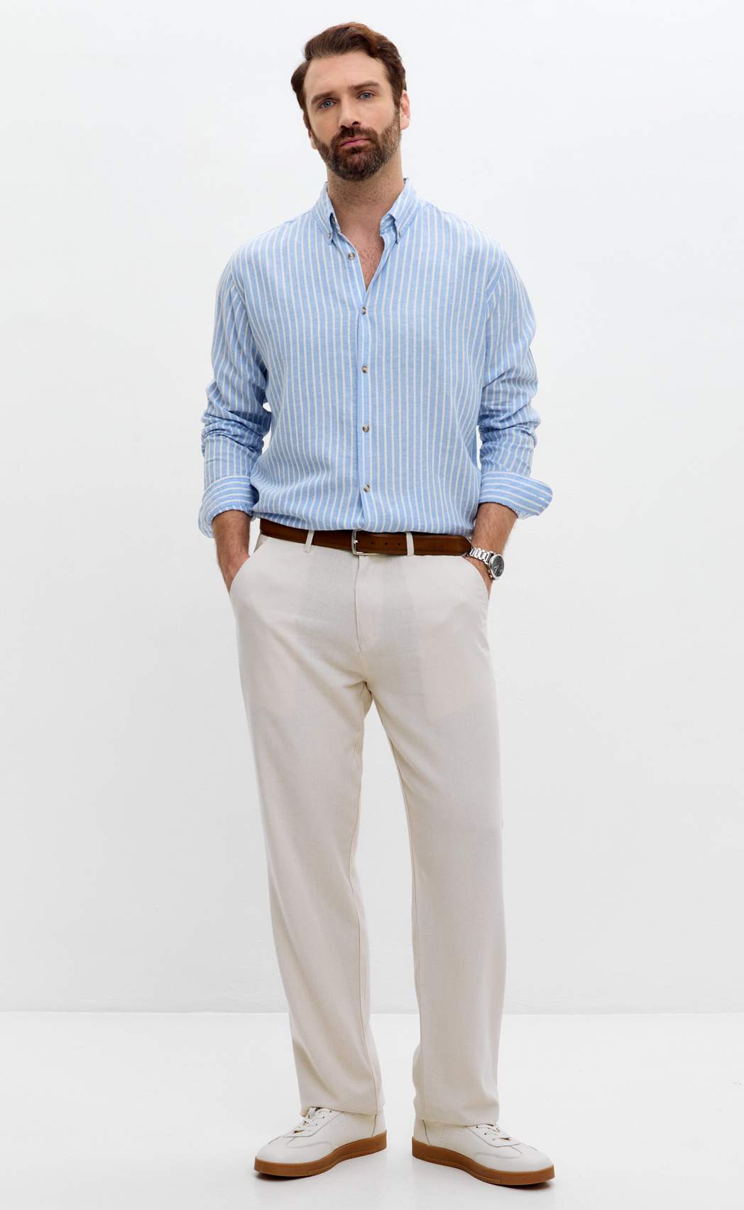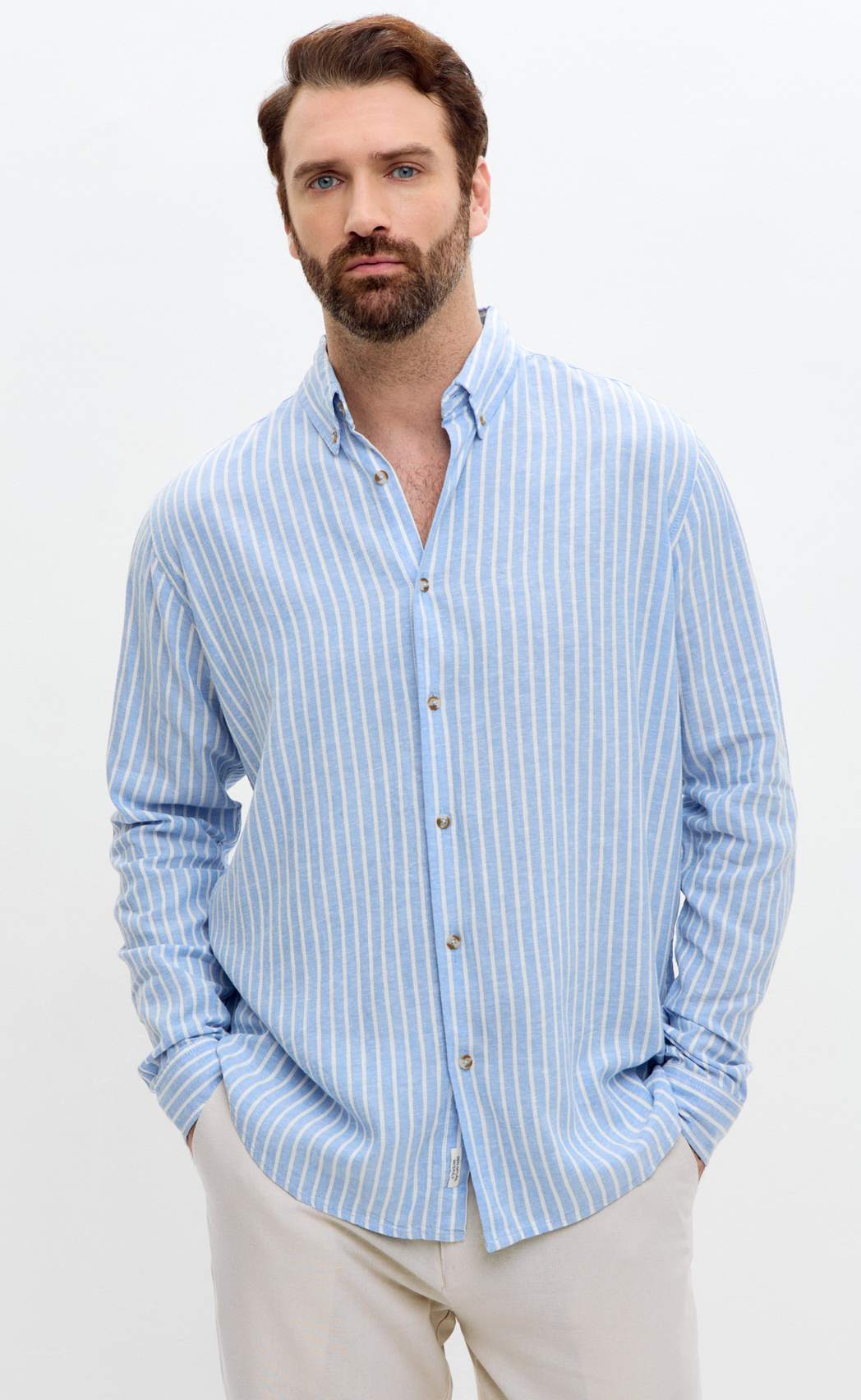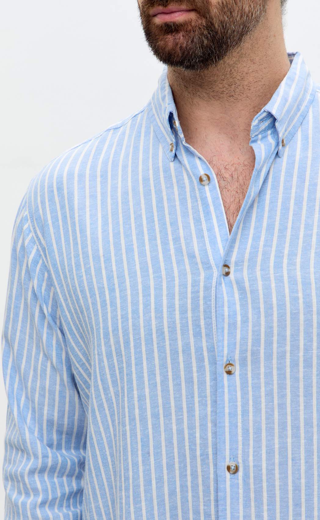 Рубашка д/р лен F611-0483 l.blue stripes