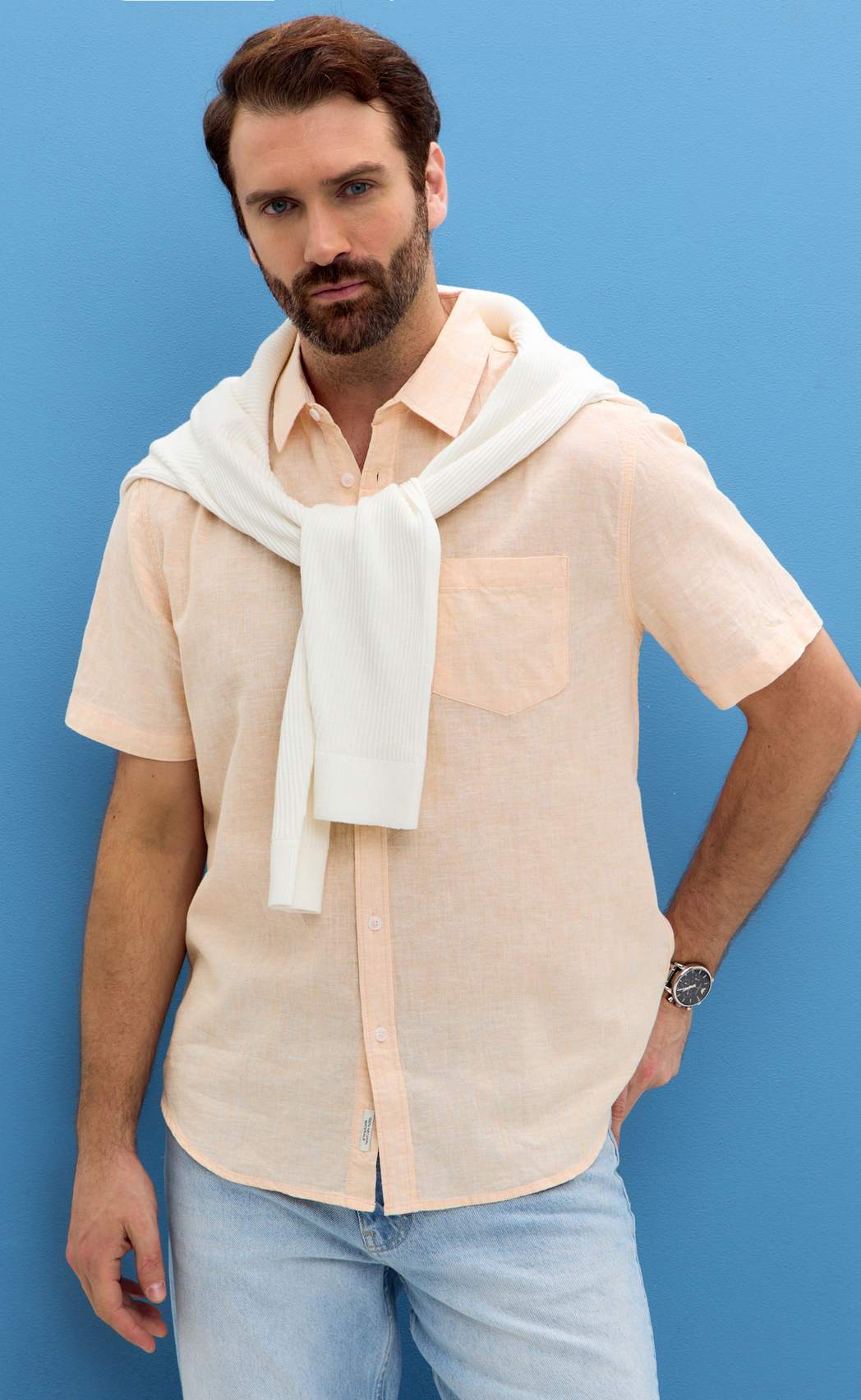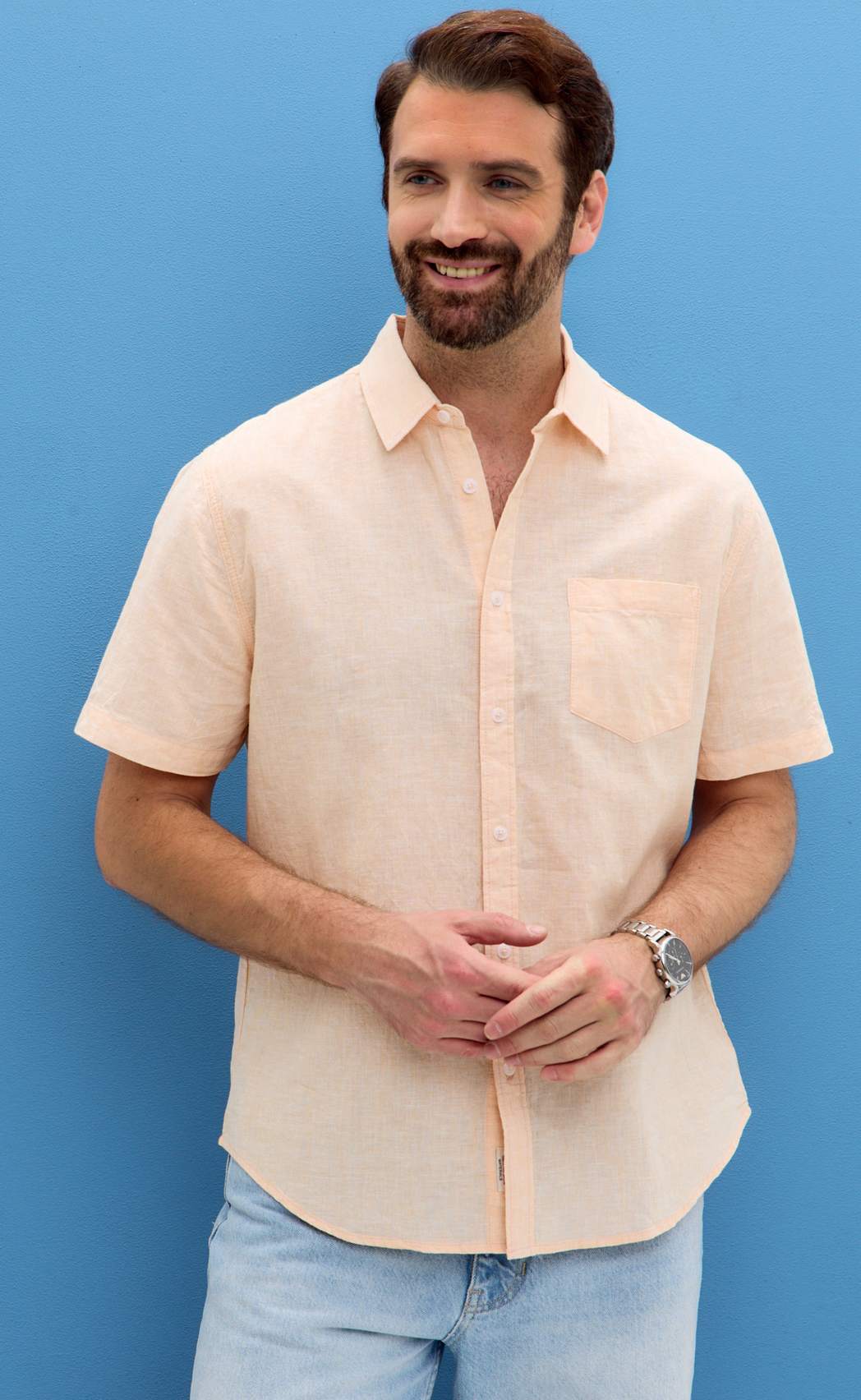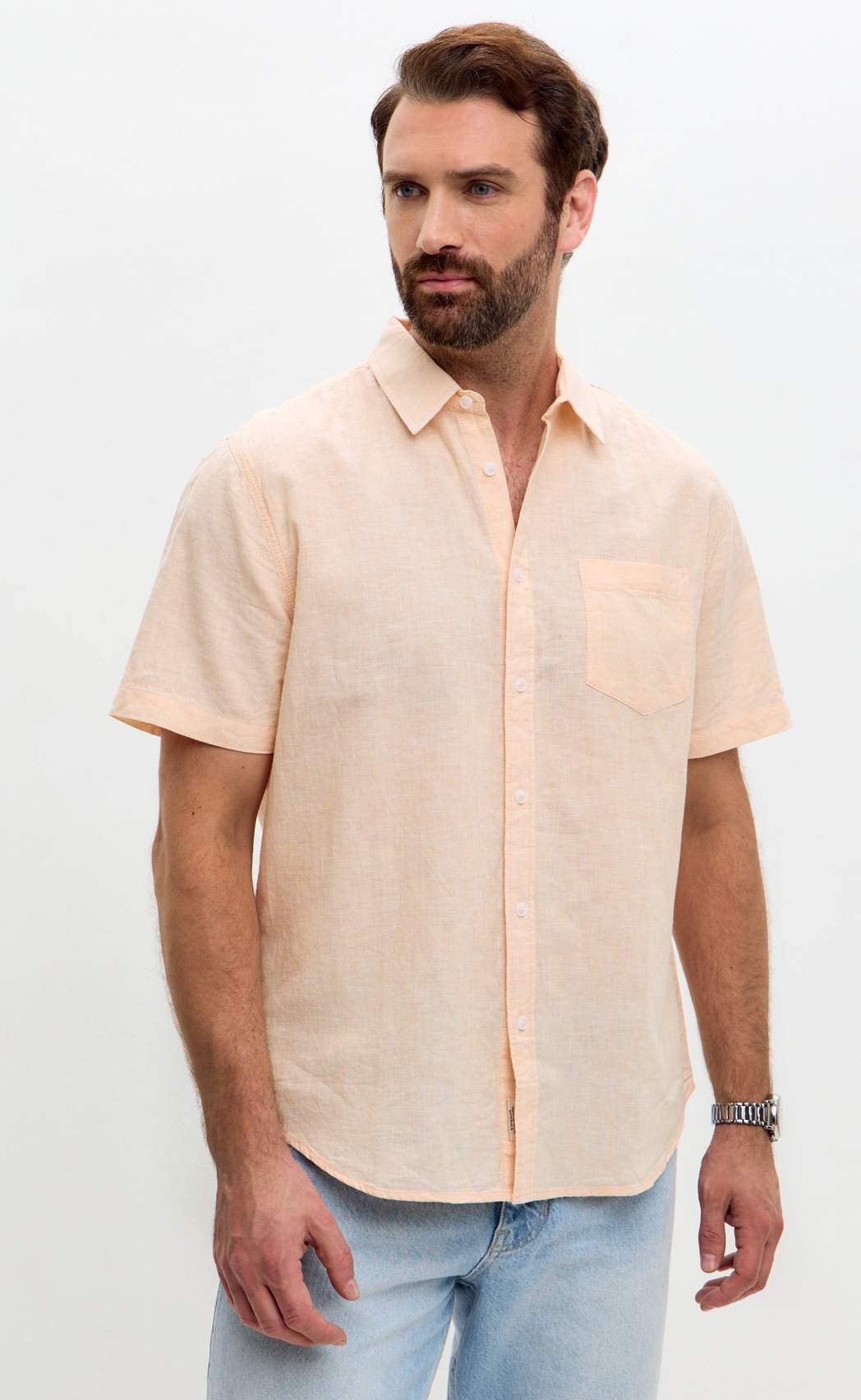 Рубашка к/р лен F111-0450 l.orange