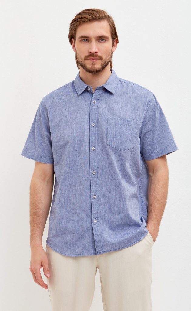 Наименование для сайта: Рубашка к/р лен F111-0450 middle blue
