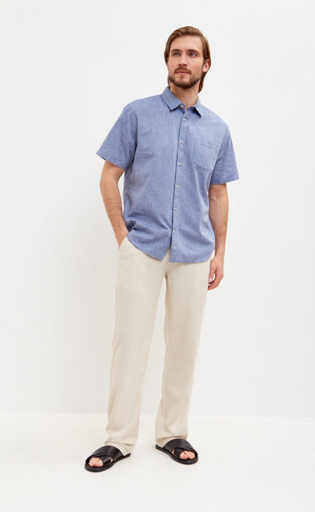 Рубашка мужская льняная от бренда Fine Joyce из ECO COLLECTION. Рубашка мужская с коротким рукавом, прямой крой, застежка на пуговицы, спереди накладной карман. Все наши льняные изделия проходят дополнительную энзимную обработку, в результате чего они не подвержены усадке при последующих стирках и не линяют. Рубашка мужская летняя (80% лен, 20% хлопок) обладает всеми достоинствами натуральных материалов, позволяет телу дышать, не сковывает движений и дает ощущение комфорта и прохлады даже в жаркую погоду. Рубашка мужская прямая отлично подойдет на лето как для офиса, так и для отдыха. Рубашка мужская лен идеально сочетается с льняными брюками бренда Fine Joyce. Рубашка мужская с коротким рукавом однотонная представлена в размерах: M, L, XL, XXL, 3XL. Для Вашего удобства в карточке товара есть фото с мерками.