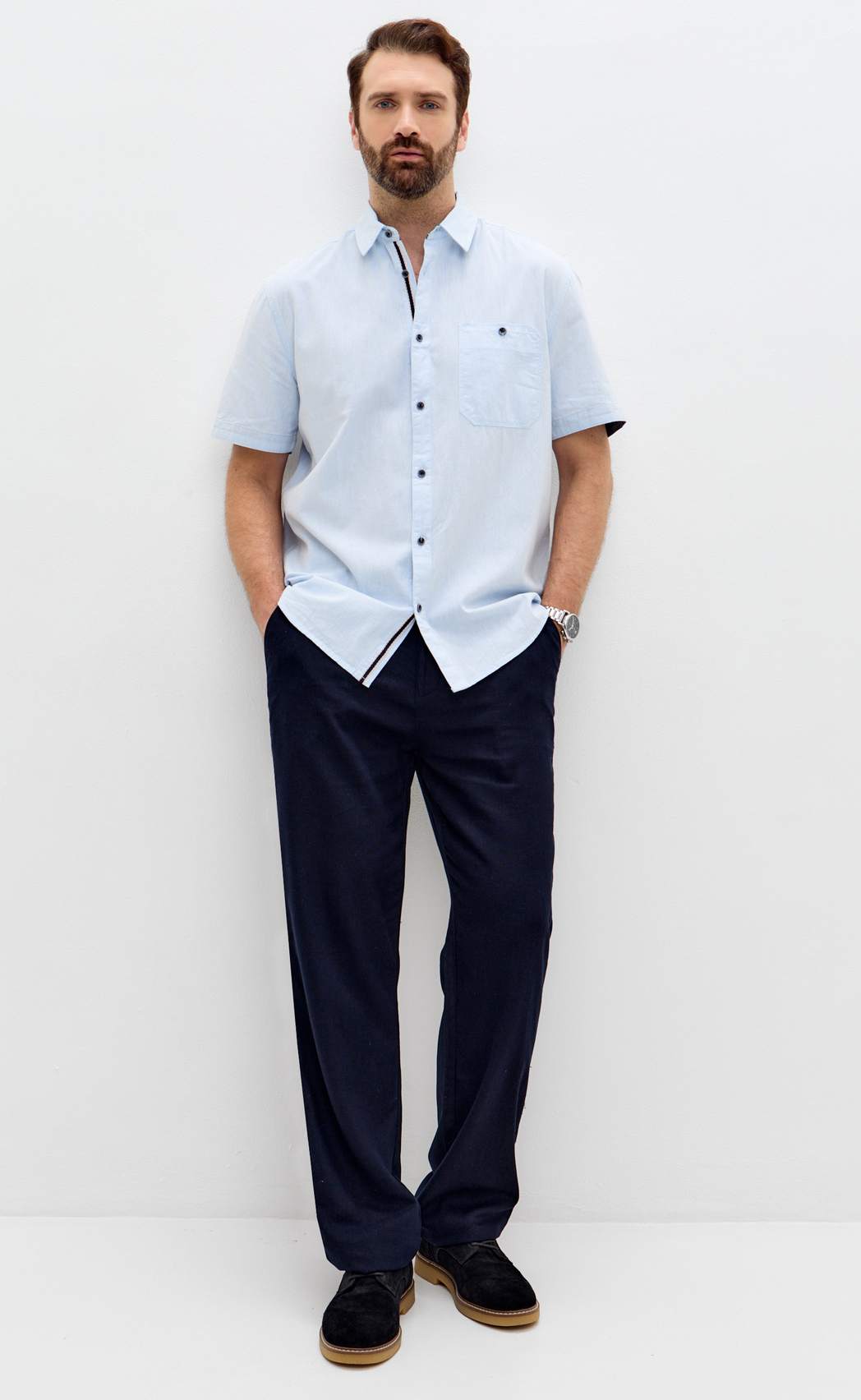 Рубашка к/р лен F611-0485 l.blue
