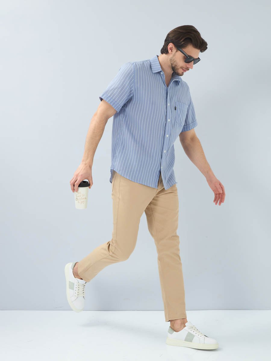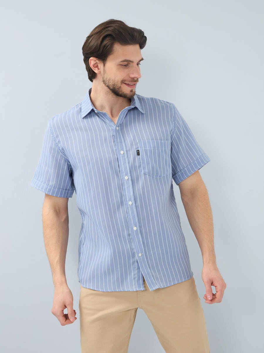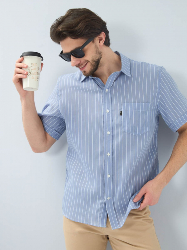 Классическая мужская рубашка F5, посадка  Comfort fit, с отложным воротником со стойкой, короткими рукавами и изогнутой формой  низа, застегивается на пуговицы по всей длине, с нагрудным карманом.