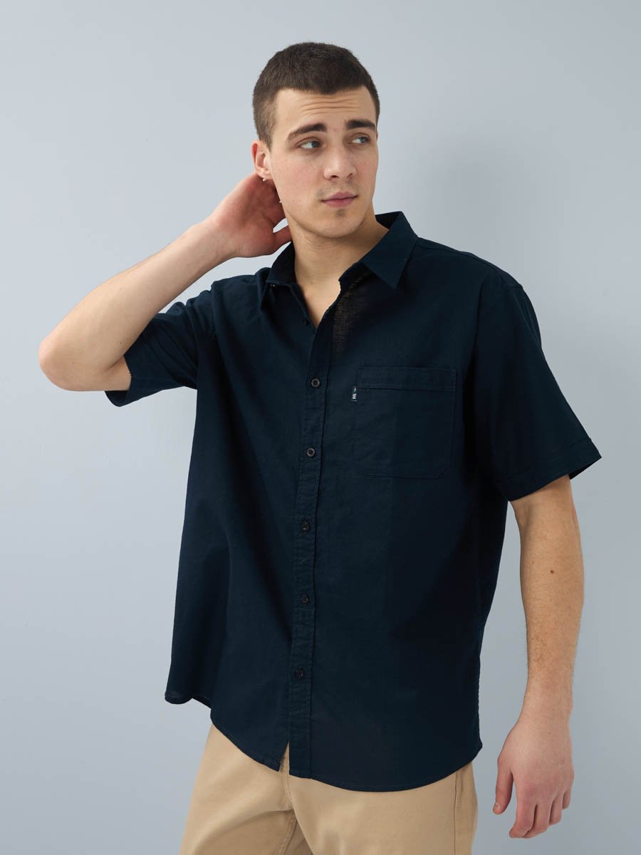 Рубашка изготовлена из высококачественной смесовой ткани (лен с хлопком), мягкая и приятная на ощупь.