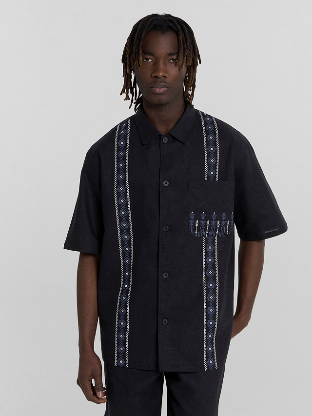 Мужская рубашка прямого силуэта — это воплощение комфорта и непринужденного стиля. Свободный крой обеспечивает легкость движений и идеально подходит для создания расслабленного образа. Короткие рукава и отложной воротник добавляют классический акцент, сохраняя универсальность дизайна. Центральная застёжка на петли и пуговицы делает рубашку практичной, а накладной карман на груди добавляет функциональности и интересный акцент. Разрезы по низу боковых швов обеспечивают комфортную посадку и элегантное завершение модели. Изделие выполнено из смеси льна и хлопка, что гарантирует мягкость, воздухопроницаемость и естественную долговечность материала. Такая рубашка станет отличным выбором для теплых дней, благодаря натуральным материалам и продуманному дизайну. Рекомендуем!