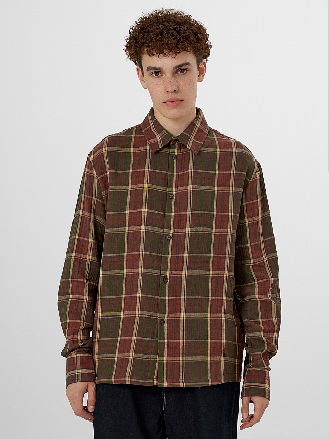 Мужская рубашка в клетку коричневого оттенка – универсальная модель, которая станет основой стильного гардероба. Эта коричневая мужская рубашка из хлопка с длинным рукавом сочетает в себе классическую клетку и современный крой, создавая идеальный баланс между повседневностью и элегантностью. Прямой силуэт обеспечивает комфортную посадку, а натуральный хлопок гарантирует приятные тактильные ощущения и отличную воздухопроницаемость.