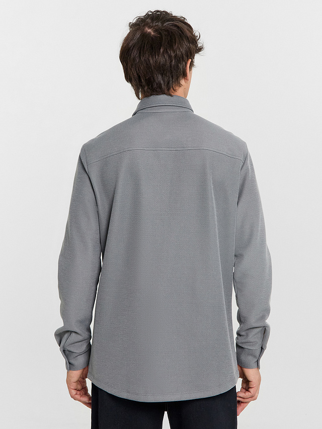 Мужская рубашка из трикотажного интерлока в стиле жакета — это удобная и стильная вещь, идеально подходящая для повседневной носки. Свободный силуэт придает образу расслабленность и не стесняет движения, а плотный и мягкий материал обеспечивает комфорт и практичность. Горловина оформлена рубашечным воротником, который добавляет строгости и завершенности. Застежка на кнопках по центру делает модель современной и удобной в использовании. Спереди расположены накладные карманы, создающие акцент и усиливающие практичность. Спущенная линия плеча подчеркивает стильную неформальность кроя, а длинные рукава с манжетами на кнопках вносят легкий элемент делового стиля. Нижний край изделия аккуратно обработан швом вподгибку, что добавляет аккуратности. Такое сочетание деталей делает рубашку универсальной — ее можно носить как самостоятельно, так и поверх футболки или водолазки.