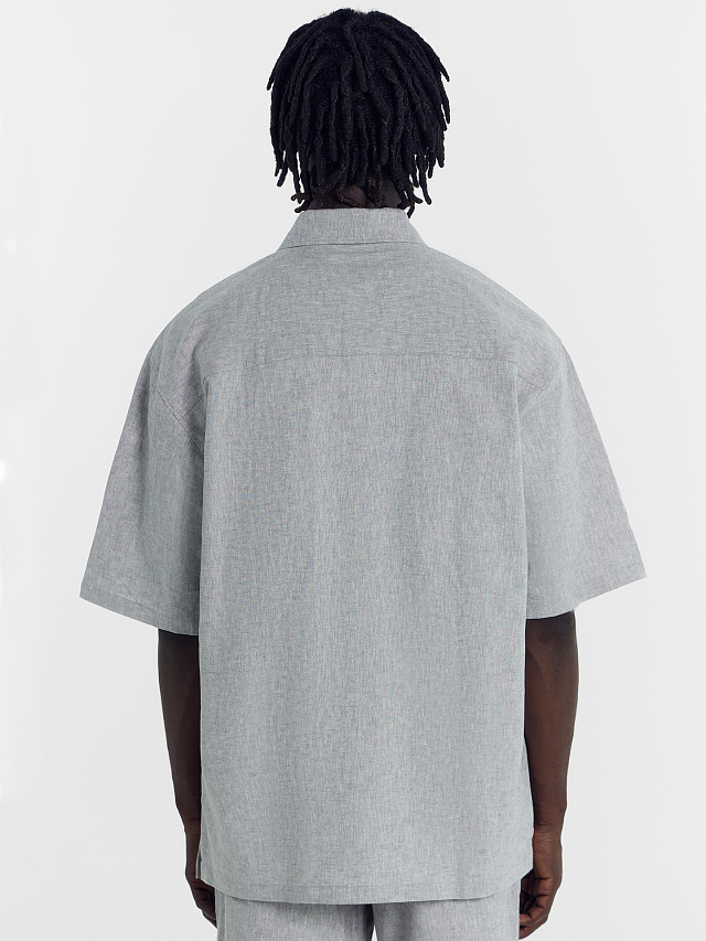 Стильная мужская рубашка с короткими рукавами сочетает в себе легкость льна и мягкость хлопка, что делает ее идеальной для жаркого лета. Спереди расположены застежка на петли и пуговицы, а воротник-стойка и горизонтальная двойная кокетка на спинке придают модели элегантный и современный вид. Эту рубашку можно носить как самостоятельный предмет гардероба или поверх футболок и маек, создавая разнообразные образы. Широкий размерный ряд позволяет подобрать идеальный вариант для любого мужчины. Рекомендуем для лаконичных городских образов, обеспечивая комфорт и стиль в любое время дня.