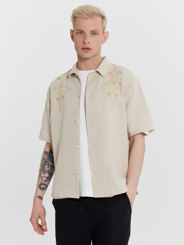 Эта мужская рубашка с коротким рукавом — стильный и универсальный вариант для повседневных и летних образов. Свободный силуэт обеспечивает комфортную посадку, а спущенная линия плеча добавляет расслабленный и современный акцент. Круглый вырез горловины с классическим воротником придает модели элегантность, а центральная застежка на кнопки делает ее удобной в носке. Накладной карман спереди добавляет функциональность и стильный штрих. Короткие рукава и обработанные швы придают аккуратный вид, а трикотажный материал интерлок обеспечивает мягкость, прочность и приятные ощущения на коже. Эта рубашка легко сочетается с джинсами, брюками или шортами, позволяя создавать актуальные и комфортные образы!