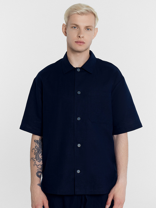 Стильная рубашка мужская прямого силуэта. Модель выполнена из премиального льна и натурального хлопка, длиной до середины бедер. Рукава короткие. Спереди - застежка на петли и пуговицы. Воротник-стойка, спинка с горизонтальной двойной кокеткой. Модная и комфортная рубашка — лучший выбор для жаркого лета. Вы можете носить ее как самостоятельный предмет гардероба, так и поверх футболок или маек. Широкий размерный ряд. Рекомендуем для лаконичных городских образов!