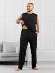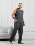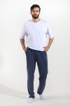 Брюки мужские из гладкокрашенго трикотажного полотна "футер 2 -нитка", свободного покроя, на притачном поясе с эластичной тесьмой внутри, с карманами в боковых швах. Нижние срезы обработаны подгибкой.