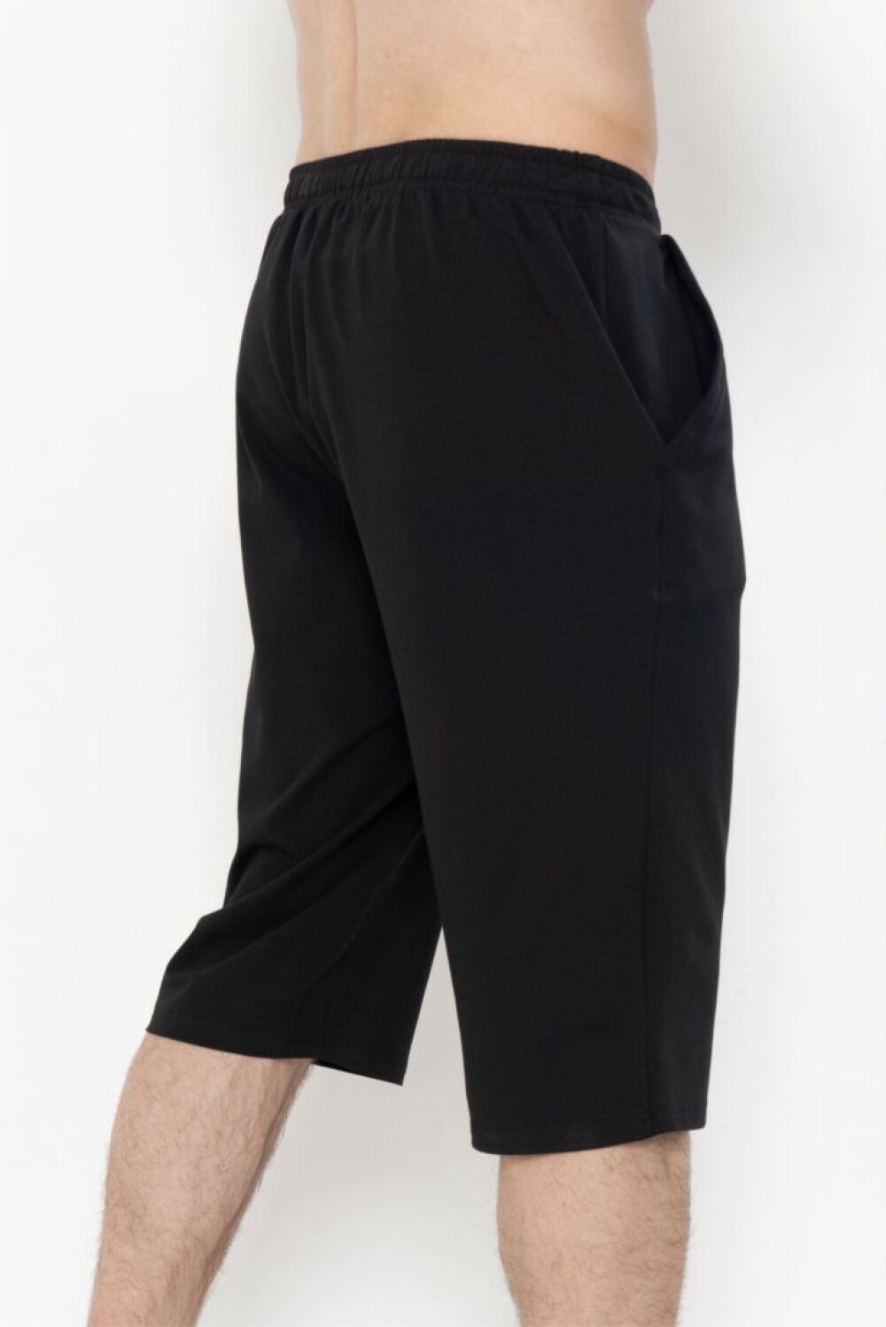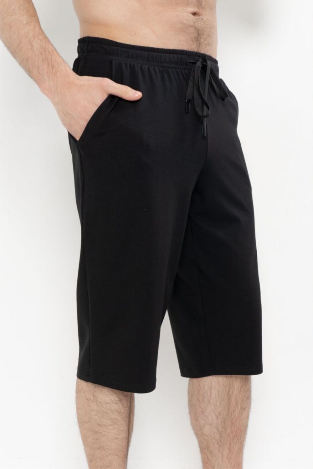 Удлиненные шорты свободного прилегания. Пояс на резинке с функциональной кулисой и декоративным шнуром. В боковых швах функциональные карманы. Модель представлена в 3 - х цветовых решениях."