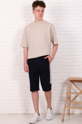 Спортивные шорты-бермуды зауженной модели с декоративной контрастной лентой по бокам и сзади.