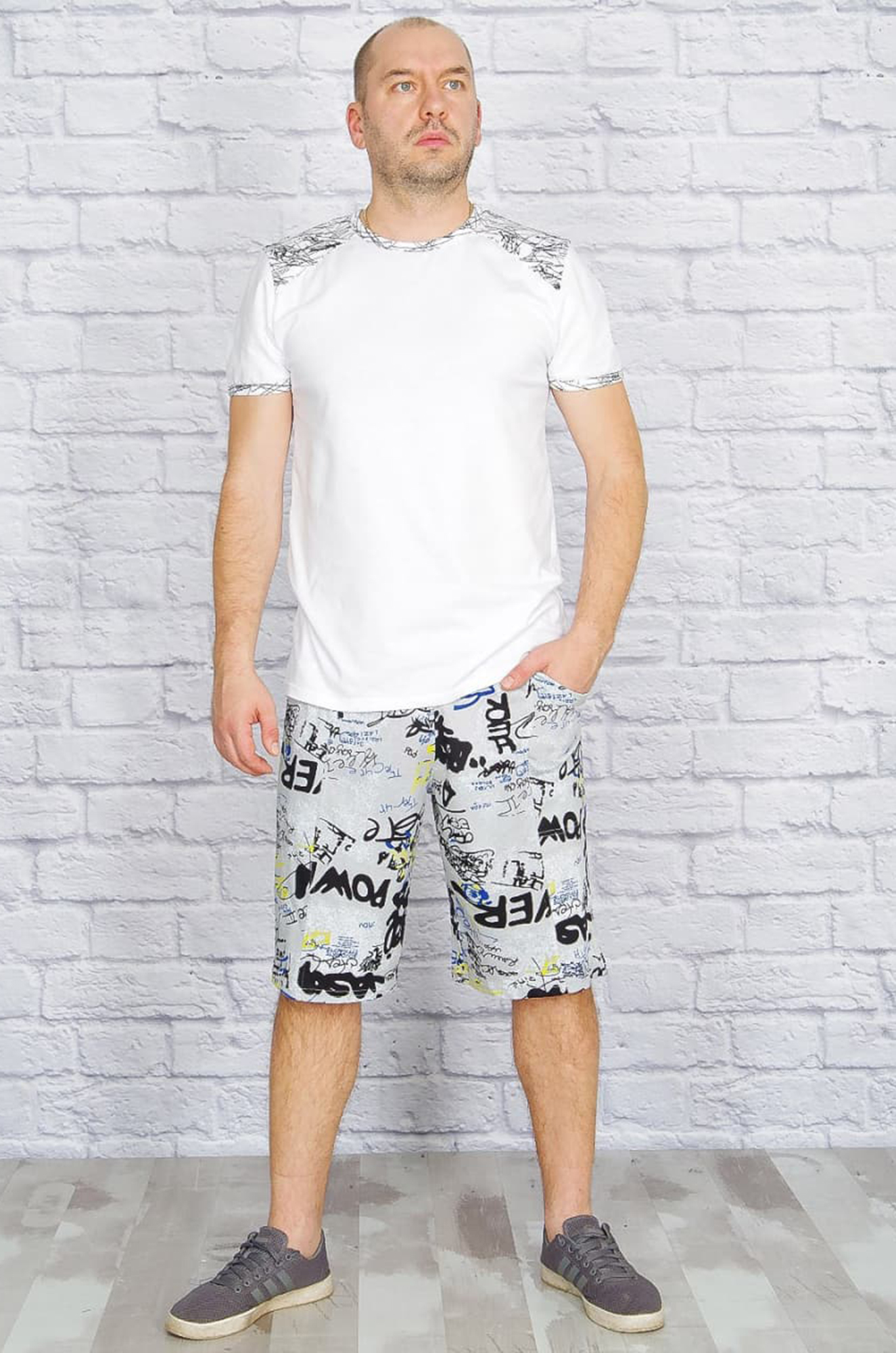 Шорты "Газета" (светло-серый)