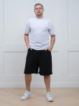 Ткань: футер с лайкрой 2-х нитка; Состав: 72% хлопок, 20 полиэстер, 8% лайкра; Производство: г. Иваново, швейное производство НАТАЛИ; Тип изделия: шорты; Цвет: черный