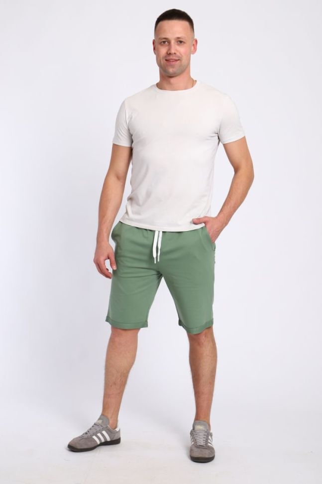 Ткань: футер 2-х нитка; Состав: 80% хлопок, 15% полиэстер, 5% эластан; Производство: г. Иваново, швейное производство НАТАЛИ; Тип изделия: шорты; Цвет: зеленый