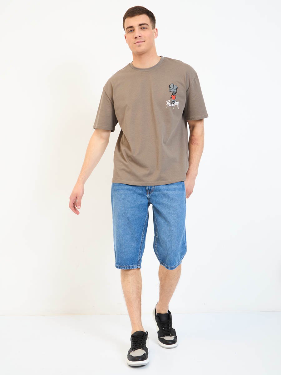 Мужские классические  джинсовые шорты с пятью карманами. Посадка Regular fit (полуоблегающие по бедру), Средняя талия  спереди и высокая сзади, немного зауженные к низу.Застежка на молнии. Выполнены из традиционной хлопковой  ткани denim. Средняя стирка с потёртостями и "усами" спереди и потёртостями сзади.