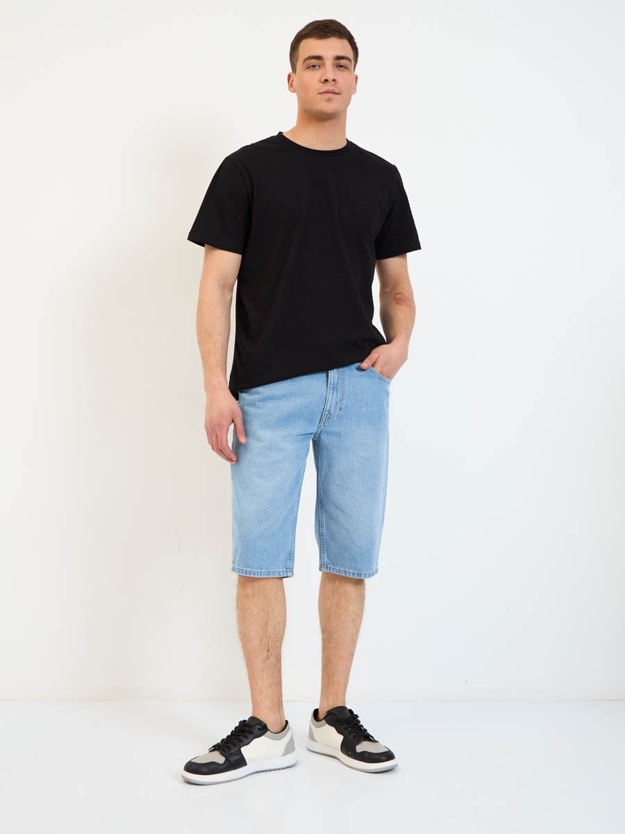 Мужские классические джинсовые шорты с пятью карманами. Посадка Regular fit (полуоблегающие по бедру), Средняя талия  спереди и высокая сзади, немного зауженные к низу.Застежка на молнии. Выполнены из традиционной хлопковой  ткани denim. Светлая стирка со слабовыраженными  потёртостями спереди и сзади.