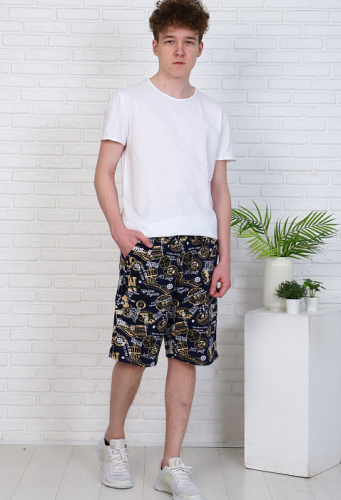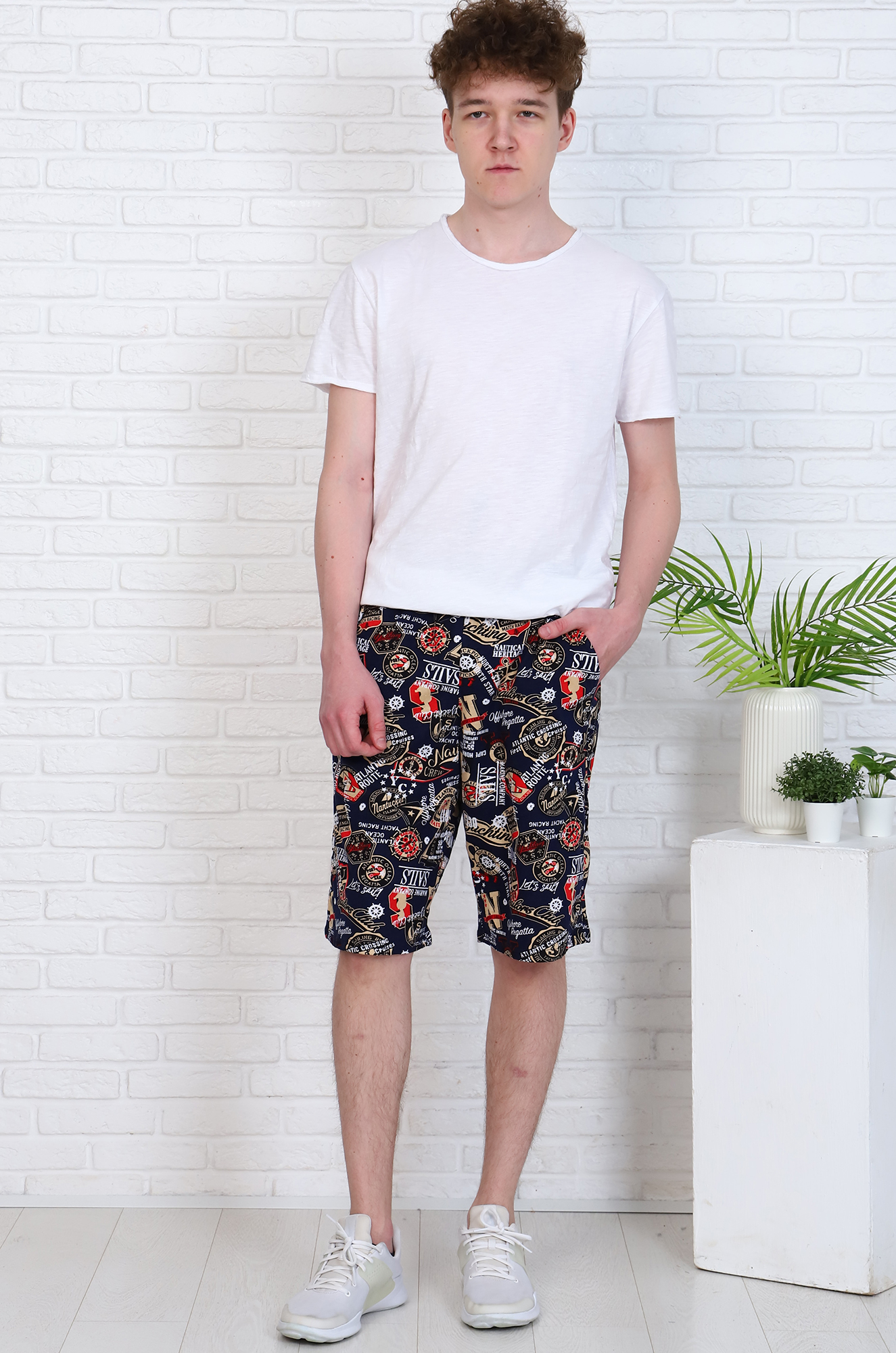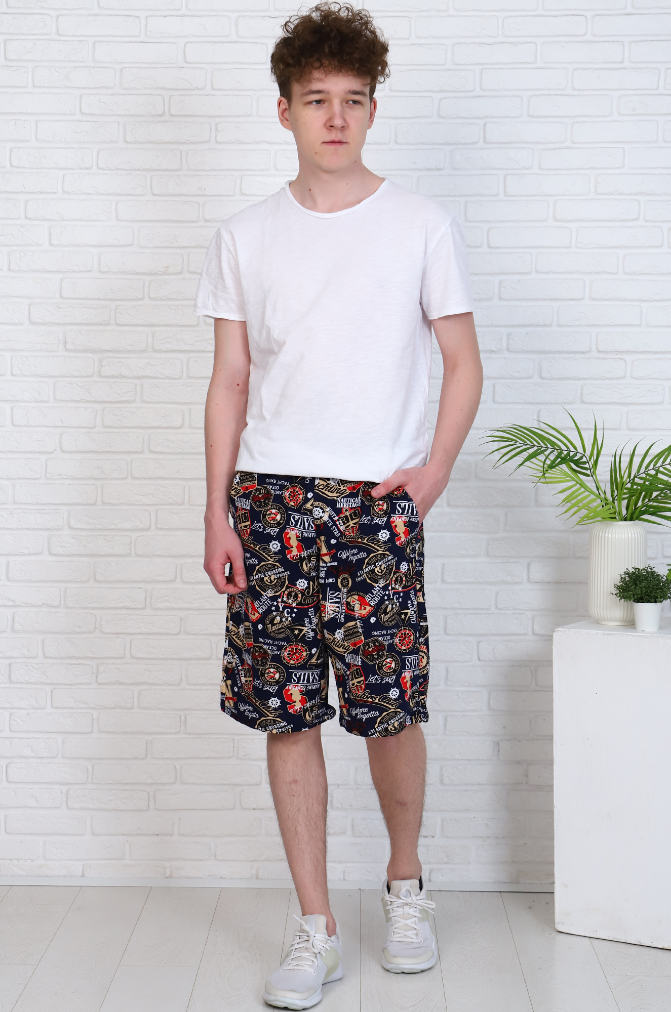 Мужские хлопковые шорты комфортной длины - удобный вариант для дома и отдыха! Пояс на широкой резинке, удобные боковые карманы.