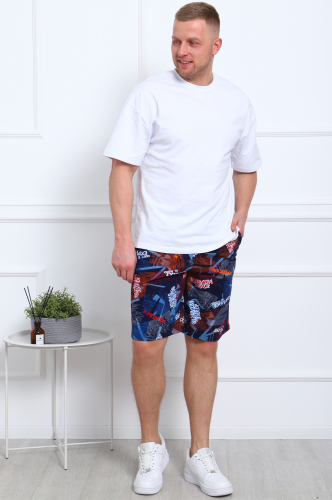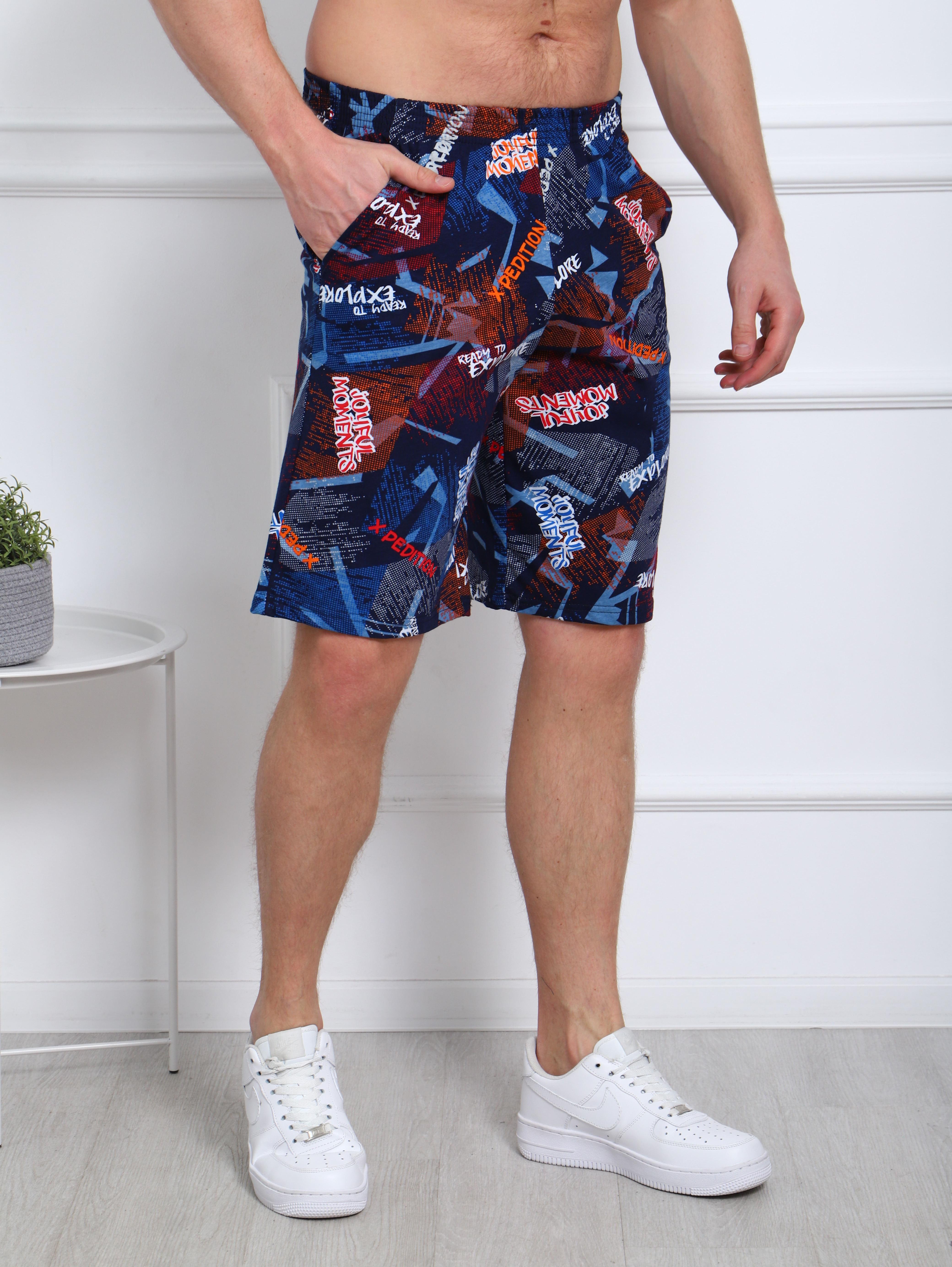Мужские хлопковые шорты комфортной длины - удобный вариант для дома и отдыха! Пояс на широкой резинке, удобные боковые карманы.