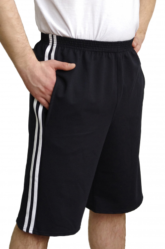 Мужские спортивные шорты больших размеров с удобным широким поясом выполненном на специальной машине. Изделие дополнено втачными карманами и декорировано контрастными лампасами.
