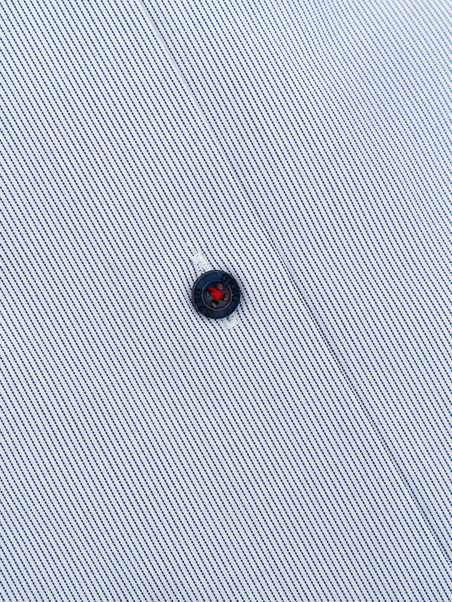 Цвет: Голубой Рисунок: Полоска..показатьi> Состав: 100% хлопок Non Iron Модель: Зауженная Ворот: Немецкий Караман: отсутствует Силуэт: Полуприталенный силуэт / Regular fit Отделка: Сорочки- внутренняя стойка воротника из ткани компаньонаi>