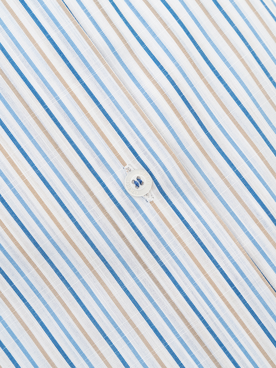 Цвет: Голубой Рисунок: Полоска..показатьi> Состав: 100% хлопок Easy Care Модель: Зауженная Ворот: Немецкий мягкий Караман: отсутствует Силуэт: Полуприталенный силуэт / Regular fit Отделка: Сорочки- внутренняя стойка воротника из ткани компаньонаi>
