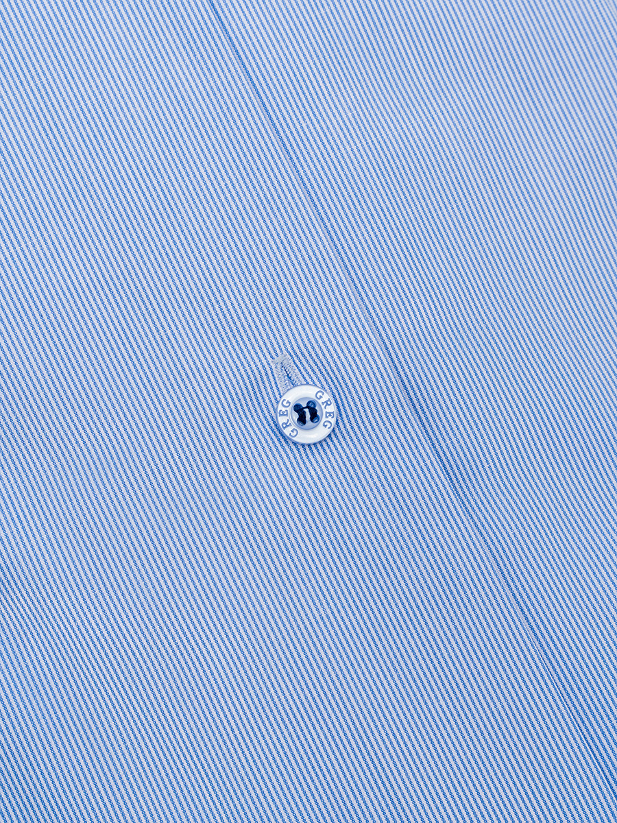 Цвет: Голубой Рисунок: Полоска..показатьi> Состав: 90% хлопок 10% полиэстер Модель: Зауженная Ворот: Немецкий Караман: отсутствует Силуэт: Полуприталенный силуэт / Regular fit Отделка: Сорочки- внутренняя стойка воротника из ткани компаньонаi>