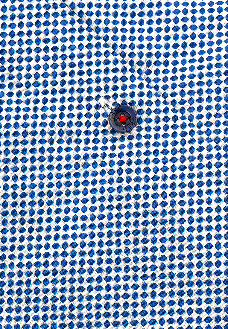 Цвет: Голубой Рисунок: В мелкие э..показатьлементы Состав: 100% хлопок Easy Care Модель: Зауженная навыпуск укороченная с разрезами по бокам Ворот: Немецкий мягкий Караман: отсутствует Силуэт: Полуприталенный силуэт / Regular fit Отделка: Сорочки- внутренняя стойка воротника из ткани компаньоналементы