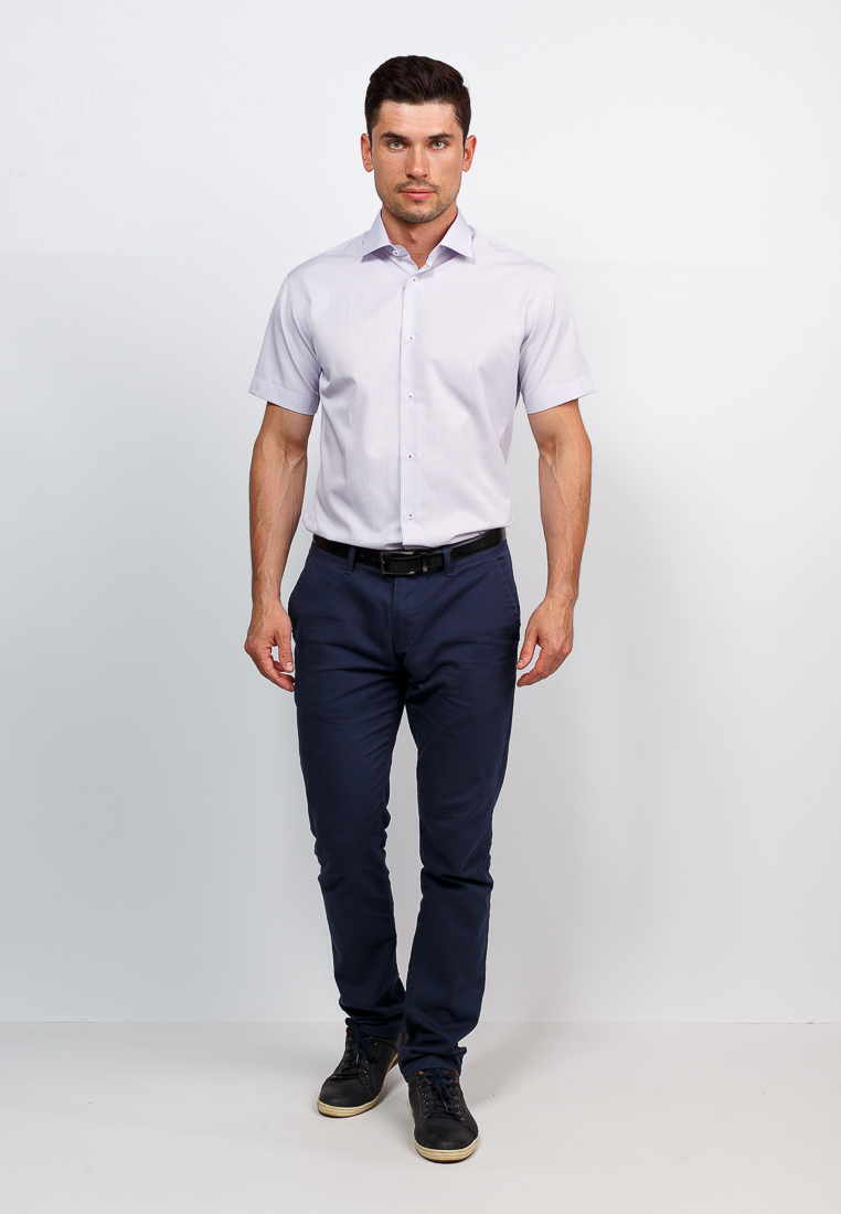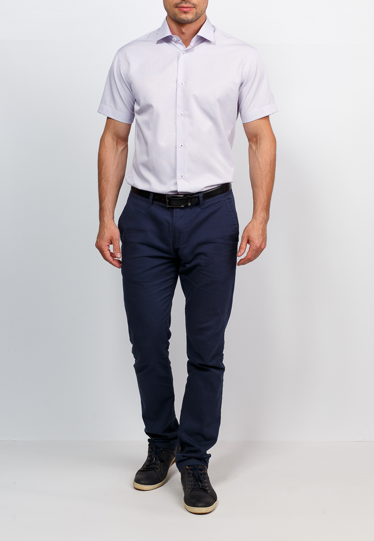 Цвет: Сиреневый Рисунок: Полоска<..показать/li> Состав: 90% хлопок 10% полиэстер Модель: Зауженная Ворот: Французский маленький Караман: отсутствует Силуэт: Полуприталенный силуэт / Regular fit Отделка: Сорочки- внутренняя стойка воротника из ткани компаньона/li>