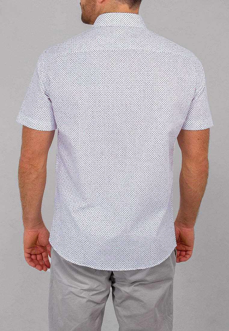 Цвет: Белый Рисунок: В мелкие эле..показатьменты Состав: 90% хлопок 10% полиэстер Модель: Зауженная навыпуск укороченная Ворот: Французский маленький Караман: отсутствует Силуэт: Полуприталенный силуэт / Regular fit Отделка: Сорочки- внутренняя стойка воротника из ткани компаньона5eed3906-574f-11e3-8947-c80aa904729bменты
