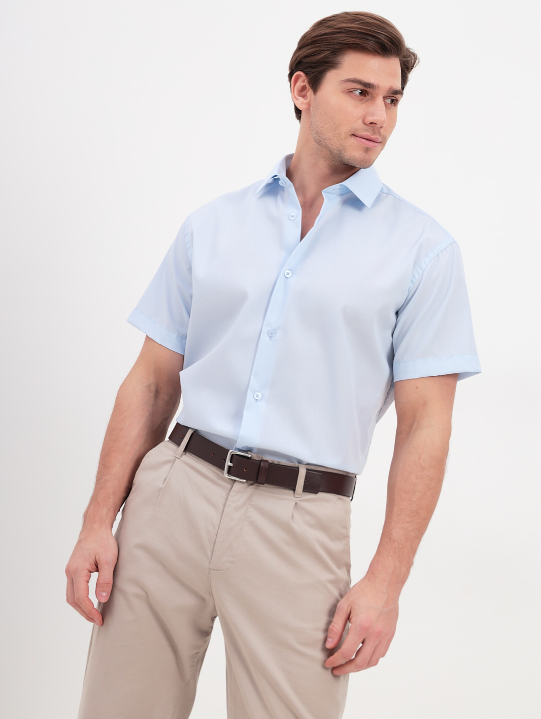 Цвет: Голубой Рисунок: Без рисунк..показатьа Состав: 100% хлопок Non Iron Модель: Зауженная Ворот: Немецкий Караман: отсутствует Силуэт: Полуприталенный силуэт / Regular fitа