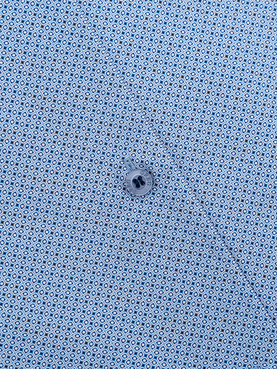 Цвет: Голубой Рисунок: В мелкие э..показатьлементы Состав: 100% хлопок Easy Care Модель: Зауженная Ворот: Немецкий мягкий Караман: отсутствует Силуэт: Полуприталенный силуэт / Regular fit Отделка: Сорочки- внутренняя стойка воротника из ткани компаньоналементы