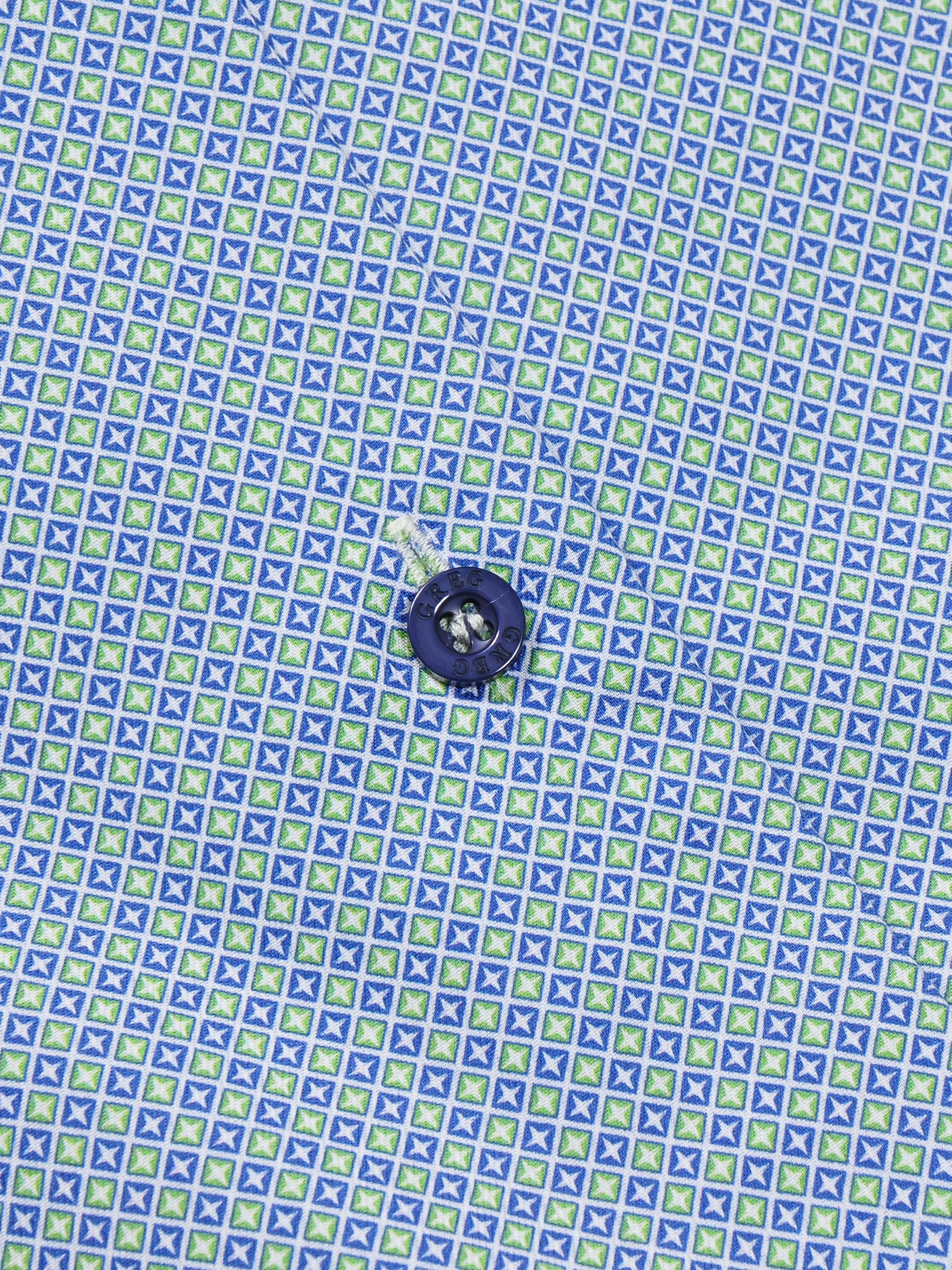 Цвет: Зеленый Рисунок: В мелкие э..показатьлементы Состав: 100% хлопок Non Iron Модель: Зауженная Ворот: Немецкий мягкий Караман: отсутствует Силуэт: Полуприталенный силуэт / Regular fit Отделка: Сорочки- внутренняя стойка воротника из ткани компаньоналементы