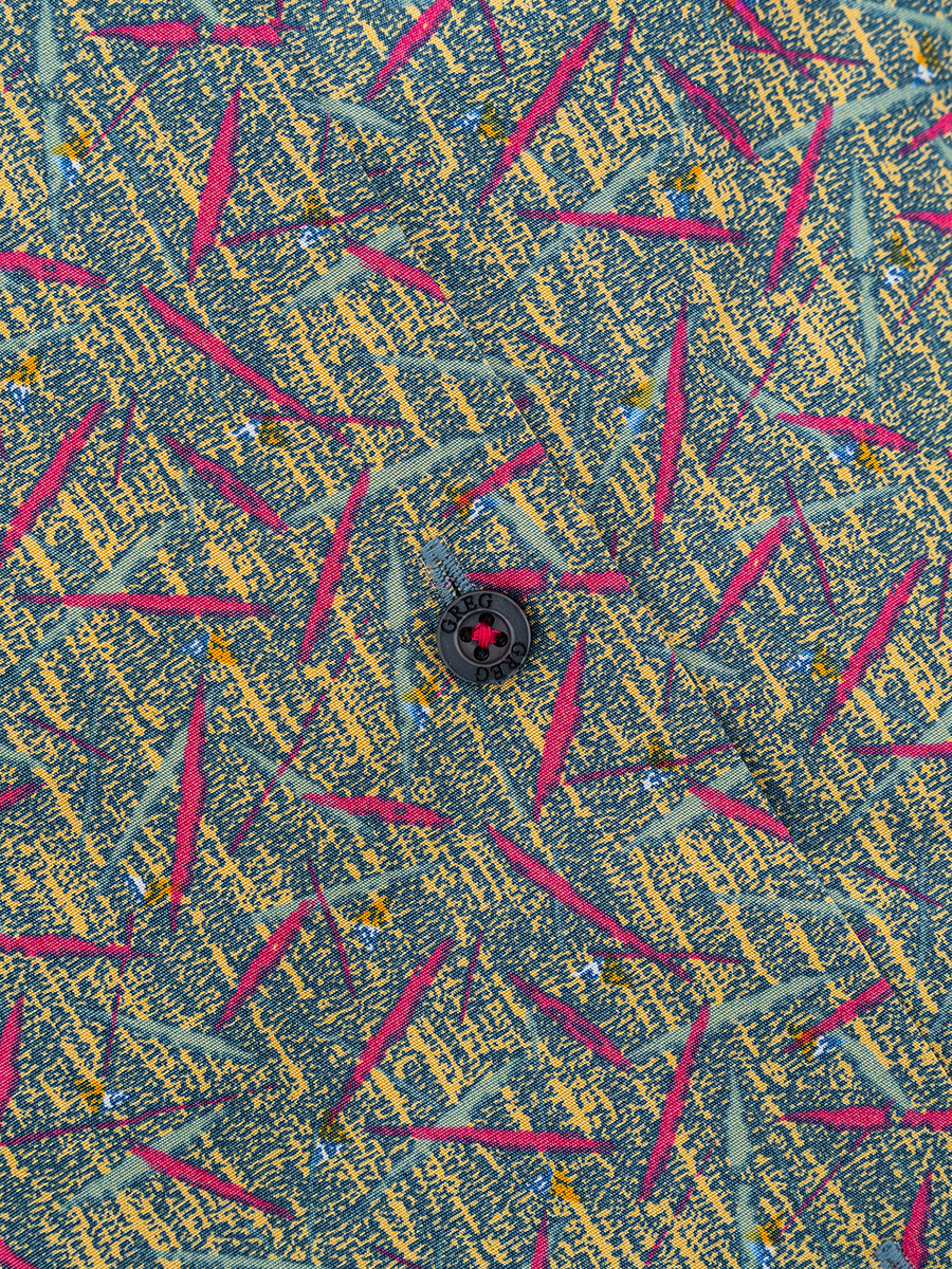 Цвет: Желтый Рисунок: В крупные э..показатьлементы Состав: 100% хлопок Easy Care Модель: Зауженная Ворот: Немецкий мягкий Караман: отсутствует Силуэт: Полуприталенный силуэт / Regular fitлементы