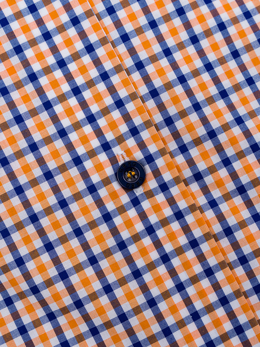 Цвет: Оранжевый Рисунок: Клетка..показатьli> Состав: 100% хлопок Easy Care Модель: Зауженная Ворот: Немецкий Караман: отсутствует Силуэт: Полуприталенный силуэт / Regular fit Отделка: Сорочки- внутренняя стойка воротника из ткани компаньонаli>