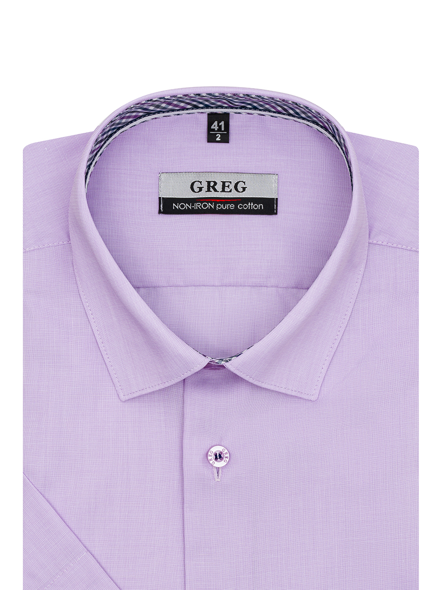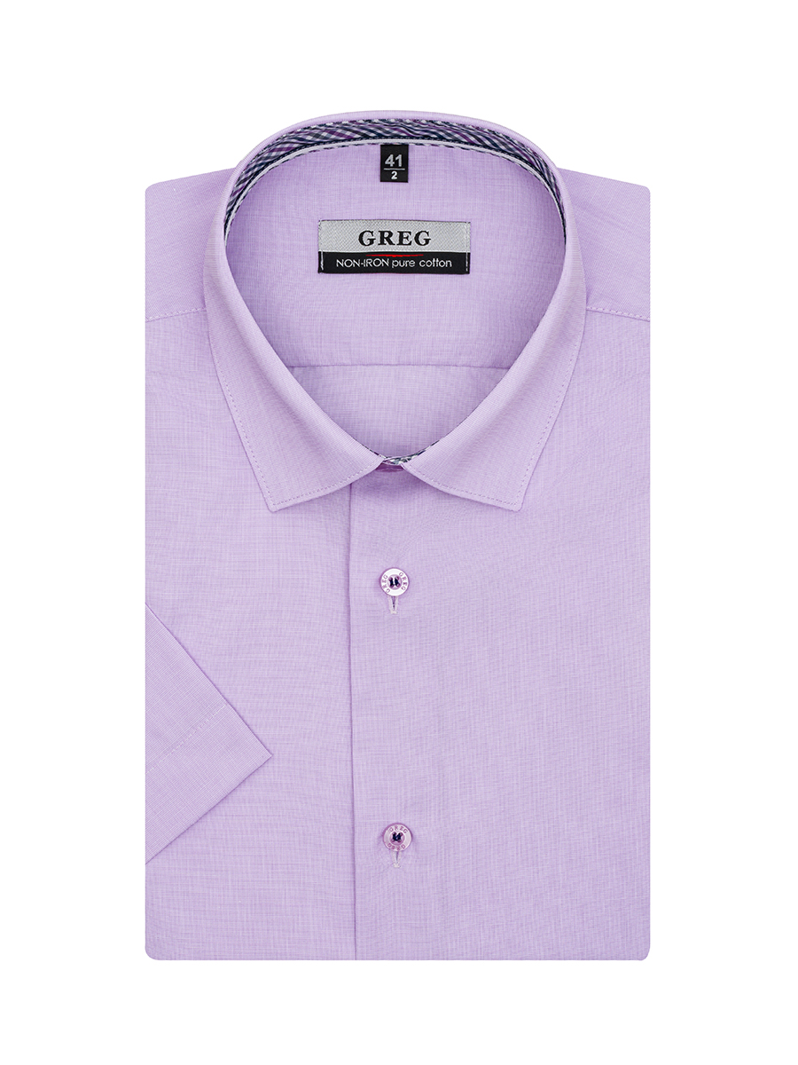 Цвет: Сиреневый Рисунок: Без рису..показатьнка Состав: 100% хлопок Non Iron Модель: Зауженная Ворот: Немецкий Караман: отсутствует Силуэт: Полуприталенный силуэт / Regular fit Отделка: Сорочки- внутренняя стойка воротника из ткани компаньона по косойнка