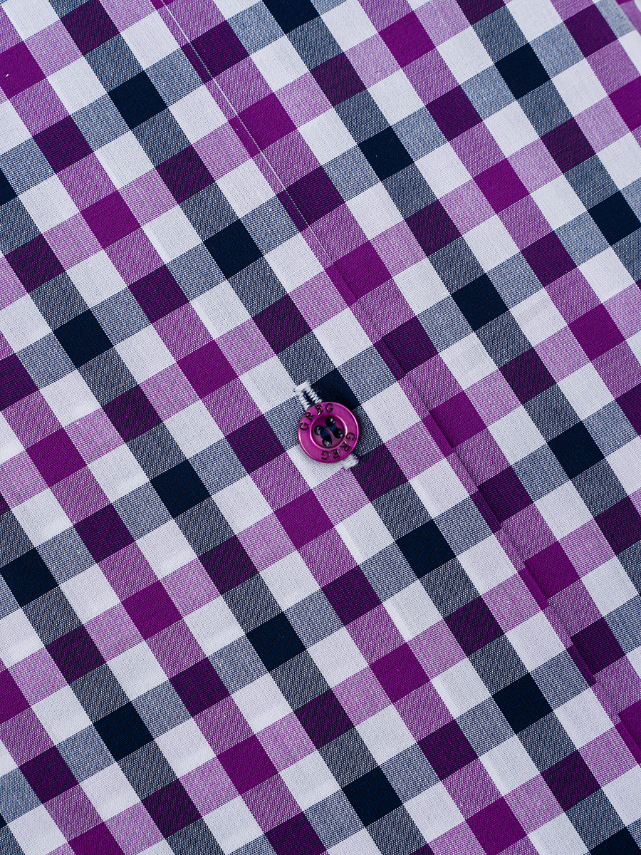 Цвет: Сиреневый Рисунок: Клетка..показатьli> Состав: 100% хлопок Easy Care Модель: Зауженная Ворот: Немецкий Караман: отсутствует Силуэт: Полуприталенный силуэт / Regular fit Отделка: Сорочки- внутренняя стойка воротника из ткани компаньонаli>