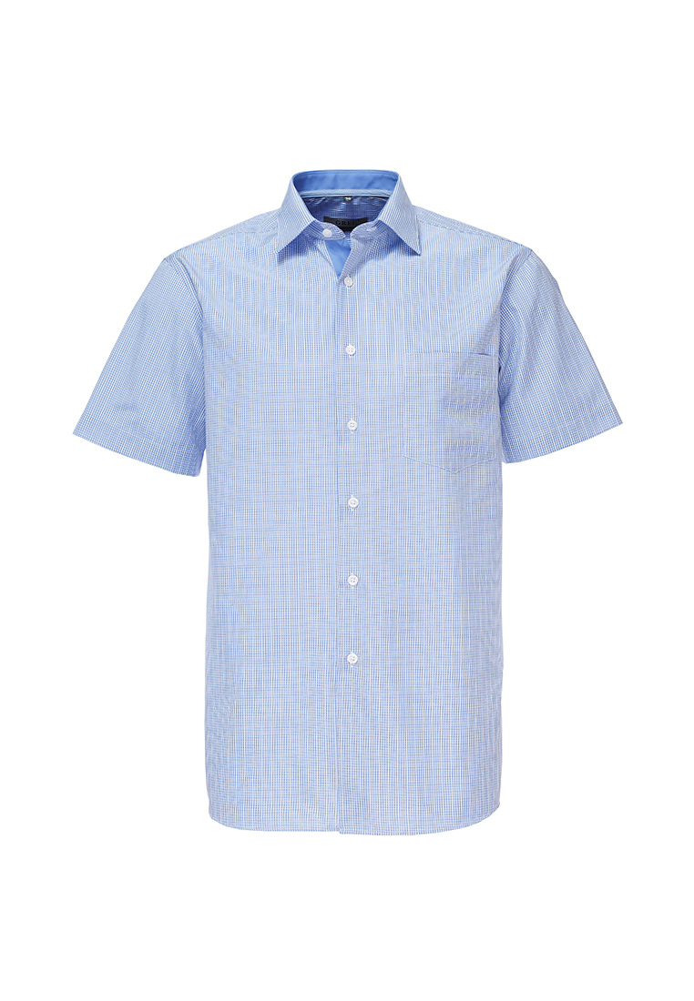 Цвет: Голубой Рисунок: Клетка..показать> Состав: 90% хлопок 10% полиэстер Модель: Зауженная Ворот: Французский Караман: стандартный, слева, накладной Силуэт: Полуприталенный силуэт / Regular fitbc735041-3d43-11e3-8b14-c80aa904729b