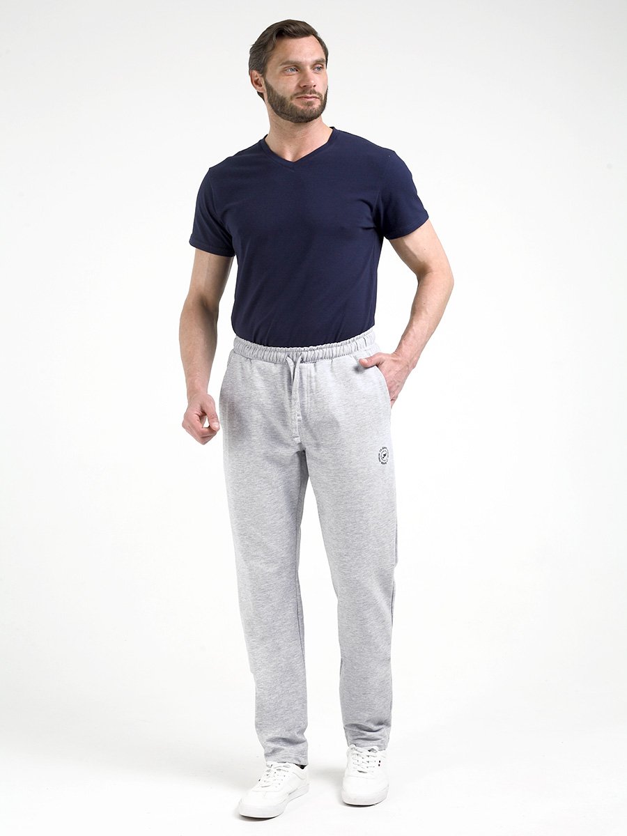 Трикотажные мужские брюки из хлопка с добавлением полиэстера, мягкие и приятные на ощупь, не сковывают движения, обеспечивая максимальный комфорт. На задних половинках два накладных кармана. На передних половинках так же имеются карманы. По поясу брюки собираются широкой резинкой. Дополнительно в поясе имеется шнур
