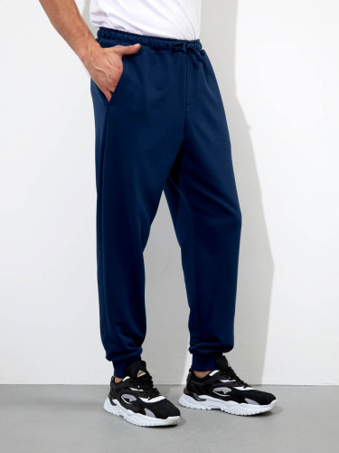 Трикотажные мужские брюки из хлопка с добавлением полиэстера, мягкие и приятные на ощупь, не сковывают движения, обеспечивая максимальный комфорт. На передних половинках вместительные карманы. По низу брюки собраны мягкой трикотажной резинкой. Пояс на резинке. Дополнительно в поясе имеется шнур.