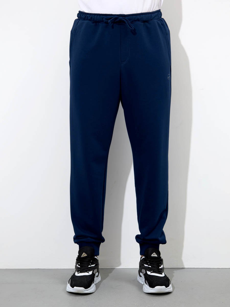 Трикотажные мужские брюки из хлопка с добавлением полиэстера, мягкие и приятные на ощупь, не сковывают движения, обеспечивая максимальный комфорт. На передних половинках вместительные карманы. По низу брюки собраны мягкой трикотажной резинкой. Пояс на резинке. Дополнительно в поясе имеется шнур.