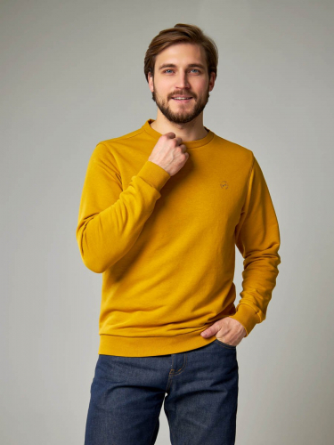 Уютная мужская толстовка F5 выполнена из хлопкового футера с добавлением полиэстера, что позволяет сохранять форму в процессе носки. Модель с круглым вырезом горловины и длинными рукавами не сковывает движений и обеспечивает наибольший комфорт. Манжеты рукавов, горловина и низ толстовки оснащены эластичными трикотажными резинками. Спереди толстовка дополнена принтом с логотипом бренда.