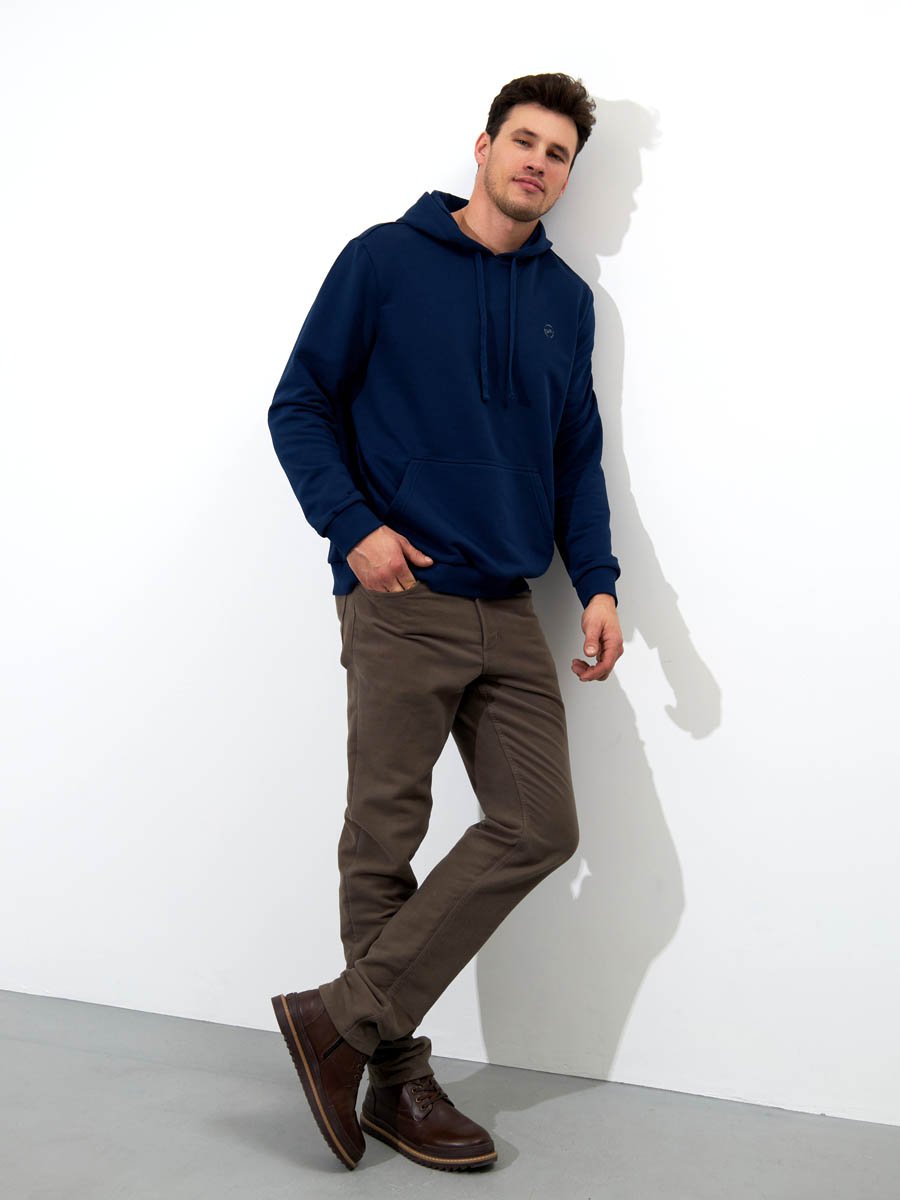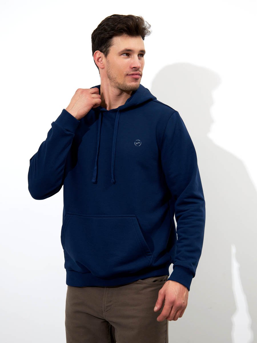 Классическая толстовка "Худи" выполнена из хлопкового полотна с добавлением полиэстера. Мягкая и приятная на ощупь, обладает хорошей гигроскопичностью,  позволяет коже дышать. Модель с капюшоном и длинными рукавами не сковывает движений,  обеспечивая комфорт. Объем капюшона регулируется при помощи шнура. Манжеты рукавов и низ толстовки оснащены эластичными резинками. Спереди толстовка дополнена карманом "кенгуру".