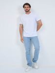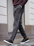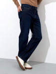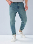 Мужские комфортные модные джинсы "Бананы" с пятью карманами. Для удобства боковые карманы джинсов сделаны косыми , т.е. карманы "хулиганы". Высокая талия, свободные по бедрам и бедру и узкие внизу. Застежка на молнии. Выполнены из слабоэластичной ткани denim comfort stretch. Классическая темная стирка "stone wash" со слабовыраженными потёртостями и "усами" спереди и потёртостями сзади.