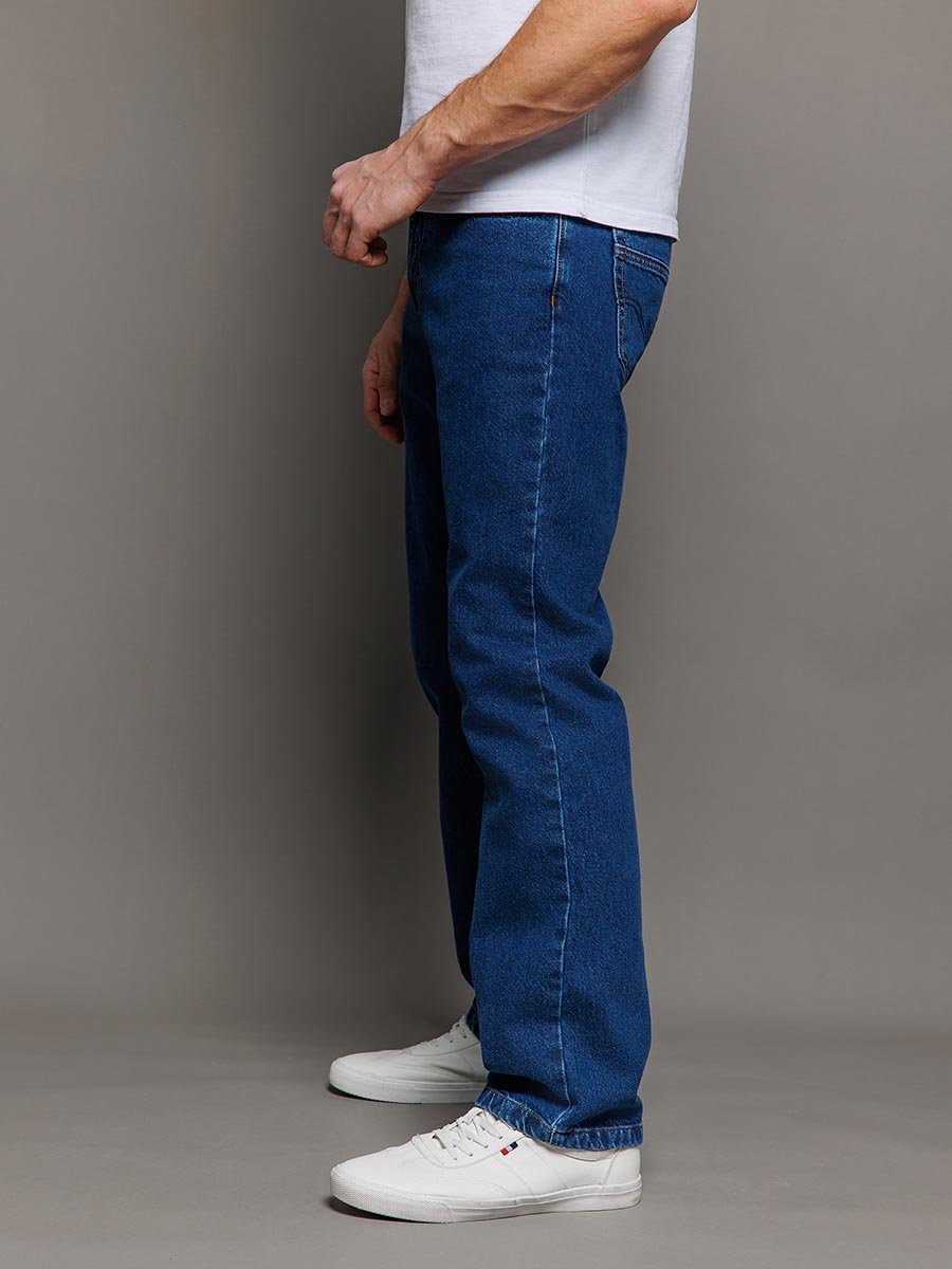 Мужские классические джинсы с пятью карманами. Посадка Regular fit (полуоблегающие по бедру), средняя высота талии. Застежка на молнии. Немного зауженные к низу. Выполнены из слабоэластичной ткани denim comfort stretch средней плотности. Классическая средняя стирка "stone wash".