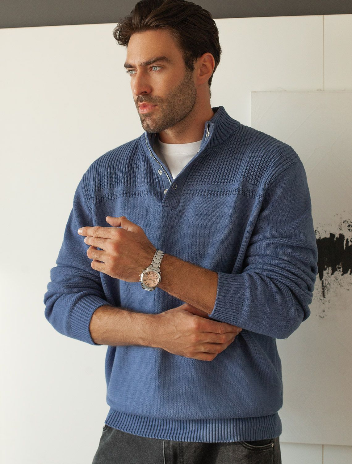 Свитер фактурной вязки с застежкой на крупные кнопки