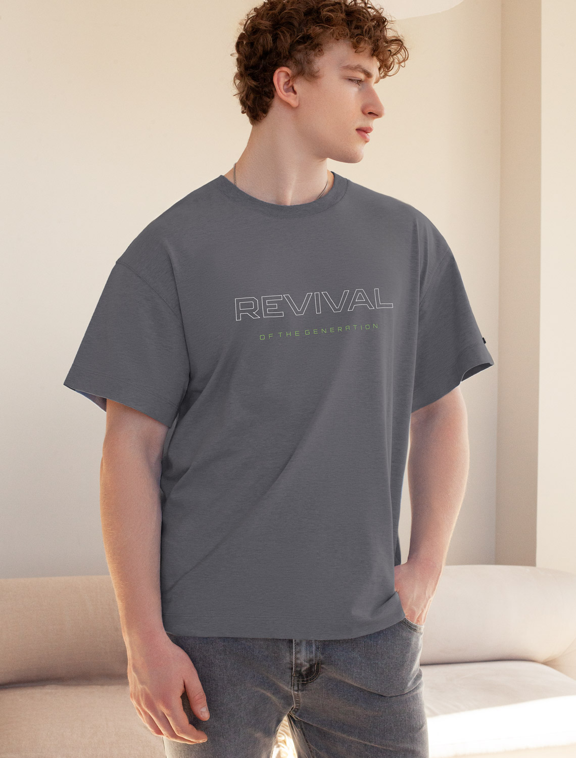 Перевод принта: Revival of the generation - возрождение поколения. Футболка свободного кроя выполнена из премиального хлопка. Авторский принт нанесен красками с устойчивым покрытием. Благодаря эластану, носить изделие очень комфортно, и оно сохранит свой безупречный вид в течение долгого времени. На рукаве нашивка из эко-кожи с логотипом бренда.