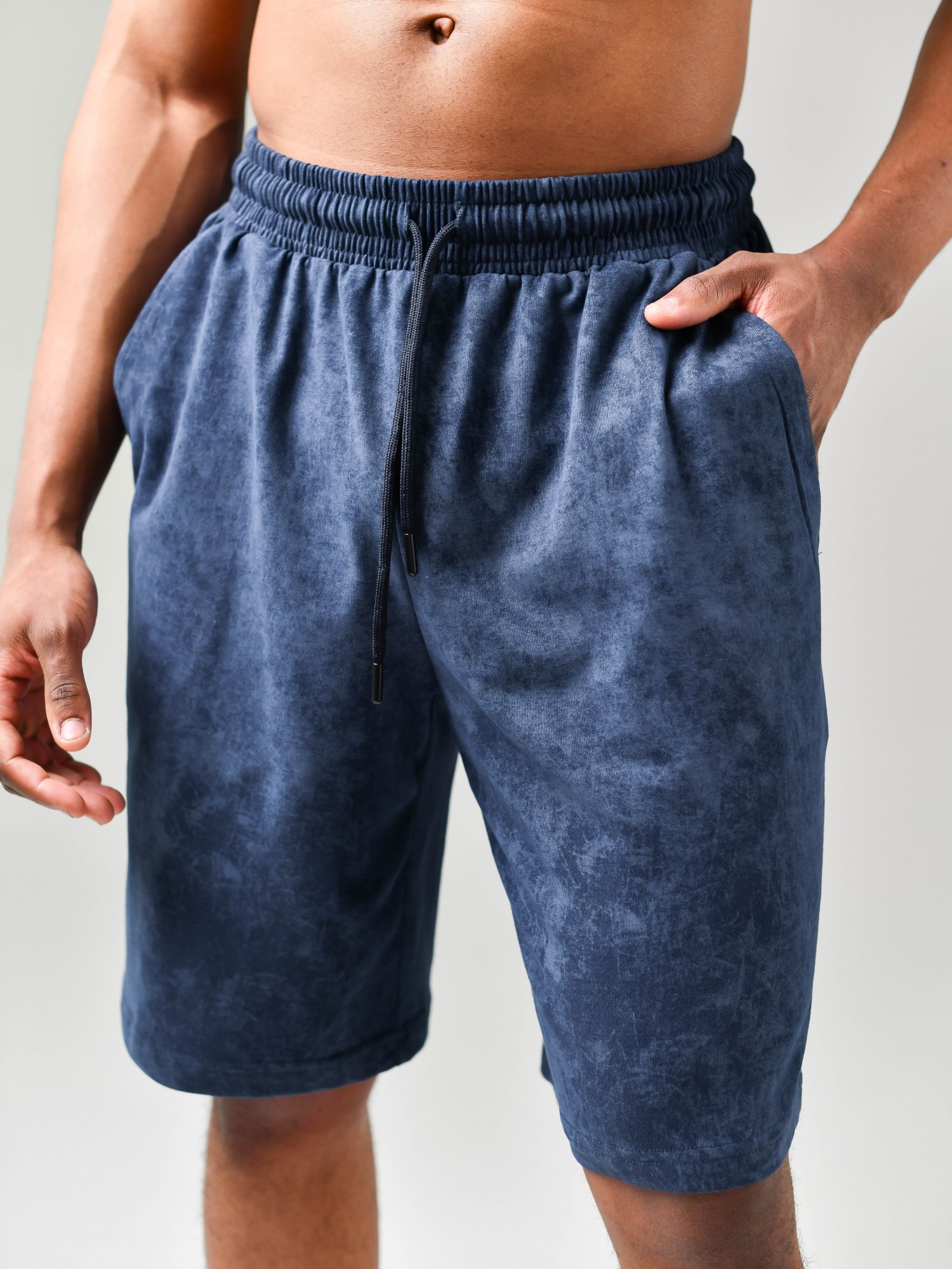 Мужские удлиненные шорты (бриджи) из трикотажного полотна с эффектом "варенки". Модель с боковыми карманами, на притачном поясе с отстроченной с эластичной тесьмой и шнуром в нем для регулирования степени прилегания.