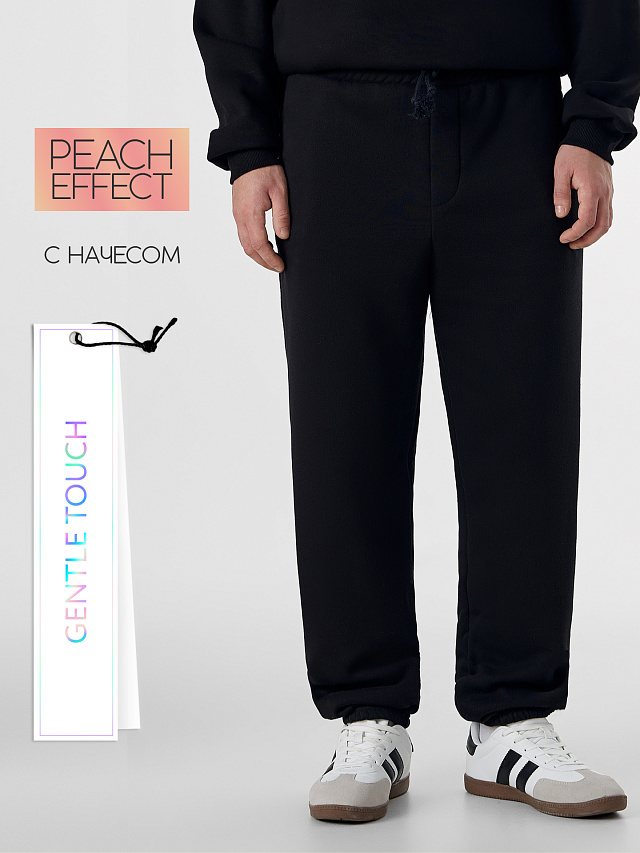 Черные теплые брюки из коллекции Gentle Touch — это современный комфорт для прохладных дней. Модель выполнена из инновационного футера с пич-эффектом, который создает на поверхности бархатистую, приятную на ощупь текстуру.